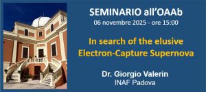 Giovedì 06 novembre alle ore 15:00, il Dott. Giorgio Valerin (INAF – Osservatorio Astronomico di Padova, IT) terrà il seminario dal titolo “Probing accretion and stellar properties in the Orion Nebula with VLT/X-Shooter”. Abstract: Electron-Capture Supernovae...